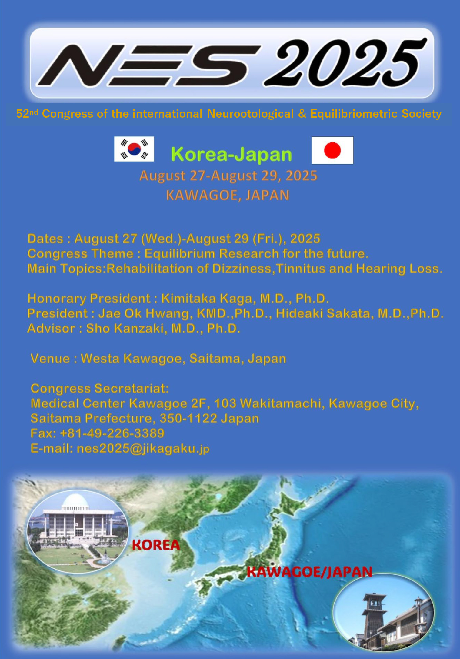 We sincerely request your support for the success of the conference and the advancement of the field of neurotology. We look forward to seeing you in Kawagoe, Japan, in August 2025.
